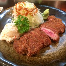 きのう 牛かつ*\(^o^)/* めちゃおいしーーー*\(^o^)/* (とろろ付、ダブル、デブ。。。)