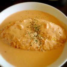 この前友達とランチに行ってきました♬ ある方がオススメしてて少し有名になったとか エビオムライスセット♡ サラダ、ドリンク、ミニパフェが付きます☆ 確かに美味しかった♬ソース濃厚やし、オムライスは卵とご飯を混ぜて焼いてあるそうで、初めての感じ(๑´ڡ`๑)また食べたい♥