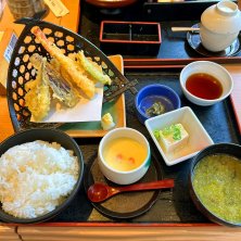 銀蔵でランチ。 天ぷら定食 980円 茶碗蒸し 230円 わんぱくな食欲のため茶碗蒸しを追加など。ただ白飯もわんぱくな盛りだな!(店のデフォルトです) こちら何故か唐揚げ定食より天ぷら定食の方が安い。旬の食材をカラッと揚げる技術を学びたいです🥹 味噌汁は日替わりであおさ。あおさの日が多めだけど稀にあら汁の日がありまして…(その日はあたりです!)