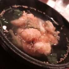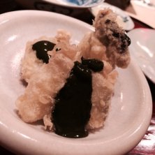 幸せの時間。アワビの天ぷらを肝のソースで。