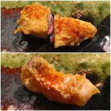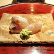 子 赤イカ / 甘鯛(白鯛) 先のアオリとはまた違うイカを 子の赤イカを墨も足も含めて、イカそのものの味を感じる天ぷらですね そして定番の甘鯛、細やかな鱗の食感と、身の優しさ、積み重ねられた一品ですね