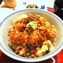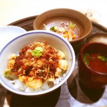天丼 / 香の物 / 赤だし 〆のご飯はいつも天丼 あとは天茶かバラ天丼がありますけど、 やっぱり天ぷら屋さんの〆は、ちょっと濃いめの丼つゆにさっとくぐらせたかき揚げの丼 今日はシラウオと海老のかき揚げ 蓋をあけるのをちょっと待って、少しだけしっとりとさせて