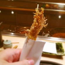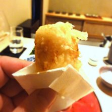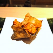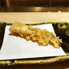 オコゼ 手持ちでオコゼ、予想外でした なんだろう、このちょっとゼラチン質の部分を残しつつの感覚は そしてこれにて天ぷらは〆です