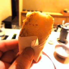じゃがいも 手持ちで頂きます とっても美味しいフライドポテト、のようですが、なんといっても「皮」の美味しさです