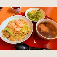 ある日のランチ 基本のチャーハン中盛りに 海老とレタス追加 あれ?今回は中盛り余裕でいけました ぷりんぷりんの海老チャーがいただけてしあわせ スープが2杯分になるというオプションが増えてました。わかってらっしゃる!次はいくぜ