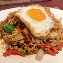 【スマイルタイランドのバミーガパオ】 #目玉焼きトッピング 東京出張「ついで」にスマイルタイランドで麺活〜♪ (๑◕ˇڡˇ◕๑) スペシャルランチセットが新しくなってたんで、そのうちの一つのこれを! 玉子麺をタイバジル(ガパオ)入りの鶏肉でスパイシーに炒めた焼きそば! ガパオライスの焼きそば版やね〜♪ #バミーガパオ #タイ風焼きそば #スマイルタイランド #タイ料理 #浅草橋 #東京出張 #ついで #gaprao #gapao #smilethailand #thaifood