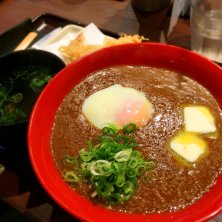 そういえば、ここのカレーうどんもまだ食べてなかったなぁと。 というわけで、控えめにカレーうどん小(200g) ここのカレーうどんはA4の和牛と沢山の野菜でとったフォンドヴォーがベースみたいです。 そのまま食べると思ってたより意外とスパイシー。ごはんにかけても美味しい感じ。 ここで半熟卵天を割って黄身と絡めて食べるつもりが黄身が全然半熟じゃねーの。がっかり。 付属の出汁を混ぜるとカレーは一気に和風へ。2度楽しめていいね!