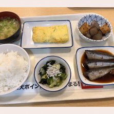 ごはん🍚大 味噌汁 だし巻き玉子(ねぎ) わかめ酢 ピリ辛こんにゃく いわし煮付け