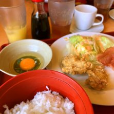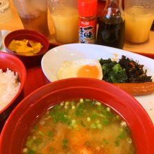 後輩とジョイフルでいつもの目玉焼き朝食豚汁変更^_^