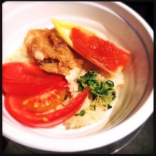 【2013夏帰省】2日目帰りに寄った馬籠宿にて、「中津川とりトマ丼」の試食会があり参加しました!地元の生産品を組み合わせています。最後は出汁をかけてお茶漬け風に頂きました〜♪暑い夏にぴったり!