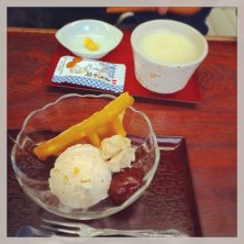 馬籠の喫茶で栗アイスワッフルと甘酒( ‾ʖ̫‾)