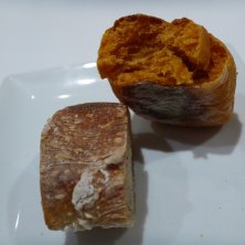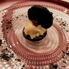 イカスミを固めたものとジャガイモ、たらのブランダード