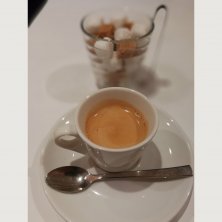 エスプレッソ。 角砂糖を用意してくれるのはお約束。
