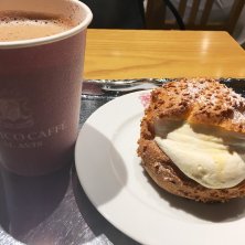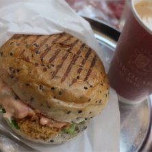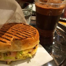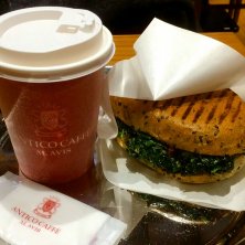 お昼ごはん♪ ここのカフェラテが大好き❤ ほうれん草たっぷりのパニーニ。 なんか体に良さそう…笑