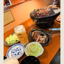 鳥焼肉いろいろ。 混んでいたのでカウンターで。店内は煙がすごい。 本店はチキン南蛮や鳥料理があるけど、ここは焼肉だけ。鳥野菜スープ(2人前)はお鍋でドーン!スープ好きにはたまらない量。鳥だしのお味噌汁でしたけど。
