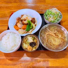 中華料理🇨🇳ランチ🕛2026.1.29(木) 珍しくオット👨と歯医者予約前後になり、その後ランチ。👨が以前来ていて、ボリューム有るし美味しいとの事で私は初訪問。 👩木曜日の定食* 酢豚。八宝菜的なお料理とラーメン🍜サラダも冷たくて👌ご飯🍚が美味しい‼︎😋何と!これで税込¥1100-。👨来た時は税込¥1000-だったそう🫢 👨麻婆焼きそば🥣玉子と干しエビのスープ付き。麻婆豆腐、四川風でかなり美味しいと思ったけど👨の第1位店は未だ揺るがず、笑 凄い人気店のよう。