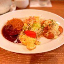 お昼ごはん♪ 1日限定10食のビフカツランチがお目当てだったんですが、売り切れ( ;∀;) でも、カニクリームコロッケが想像以上に美味しかったです❤ ☆カニクリームコロッケ&ミニハンバーグ