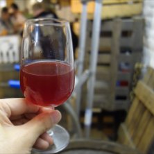 カンティヨン醸造所でクリークビア試飲. ドライで酸っぱい. 瓶からなので日本でも飲めるあの味.