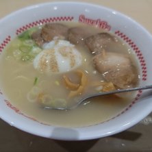 スガキヤの超肉入ラーメンに温泉玉子トッピング 肉2倍、麺1.5倍だったので、お腹苦しい😫💦 やっぱり普通の特製ラーメンでいいかな~😁