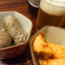 春菊天そば赤ウインナー大盛り@くめそば。 年越し蕎麦です。