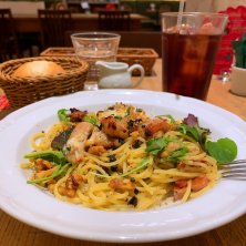 こちらのお店にしては珍しく おとなしめのビジュですね👀 これが複雑なお味で 大変美味でございました😋 しかし見逃しませんよ😎 インゲンが混じってますね☝️ いかとアスパラのクリームペペロンチーノ🍝
