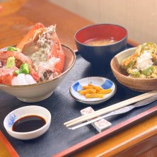 湖西への旅① *漁師丼 見ての通り、蟹•蟹味噌•お刺身数種•かいわれや胡瓜やのった丼 あら汁 かき揚げ お香こ これで税込2,500円 北小松で有名なお店 満員で入れなかったりと超人気店 美味しかった〜
