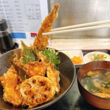 出勤前に「鶴天」へ いつもの 穴子天丼+レンコン(¥1100) これで昼からの仕事、頑張れる 😋