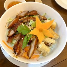 久しぶりにベトナム料理、ホイアンにて ブン ティット ヌオン+チャ ゾー ビーフンに焼肉+揚げ春巻き トッピングがパワーアップしてた