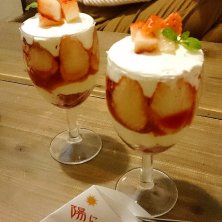 メイン撮り忘れ😅 デザートのいちごパフェ🍓🍓🍓 あかちゃんへ、ちいさく切ったイチゴをいただきました😄 ロングジェルネイル・金髪じゃない、感じのいい清楚な店員さんもいます(笑)