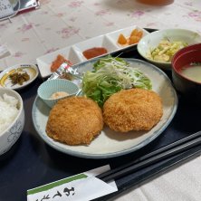 ●華見鶏ささみかつセット(食べ放題付き)+手羽餃子 昨日は明太子屋さんのランチへ。 食事には、スープ、サラダ、明太子、漬物の食べ放題付き。 ご飯を食べないので、それほど明太子は要らないけどね(笑) ささみかつの中にはチーズと明太子。手羽餃子も付けたのでお腹いっぱ〜い
