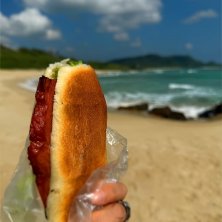 ガイドさんイチオシのメロンパン超絶美味しいパン屋でパン買って 大島紬村近くの海岸で食べた こちらはお店の2番人気の厚切りベーコンパン もちろんめちゃうまでした🥓