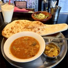 近所に出来たインドカレー屋さん… ずっと気になってはいたものの家が近すぎて、いつも帰るパターン。(^^;; メニューにないサグチキンカレーを作ってくれて、ガーリックナンとワインを❣️ 上野アーグラーの方が好みだけど、ここのサグも美味しい。d( ̄  ̄) たまによろ〜っと。^ ^