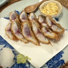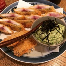 レアなアジフライ。青海苔のタルタルソースも美味しかったけど、やっぱりアジフライは醤油を付けて食べたいです。