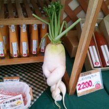 そーいえば先日デリシャスファームに行ったときに様子のおかしい大根くんが(@ ̄□ ̄@;)少し前に話題になった畑から逃げる大根くんの親戚? 味はどーなんでしょ。変な形なのにちょっと癒される~(*´ω`*)