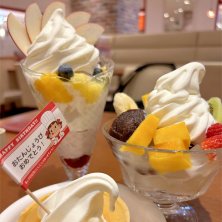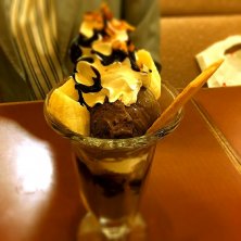 不二家レストランでチョコレートパフェ。レトロな雰囲気に癒される。