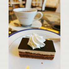 散歩がてら来て見た ケーキセット750円 チョコレートケーキ選択 紅茶がポットサービスじゃなくてカップ ケーキも思ってたより小さかった 前より50円値上がりしてたけど、この値段だったらそんなもの? ケーキ美味しかった