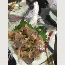 トビウオなめろう 細か過ぎず、トビウオの引き締まった食感も楽しめる。生姜・ミョウガ・小葱のアクセントも効いてる。