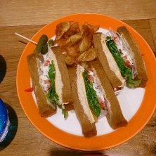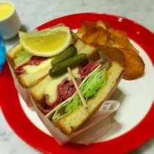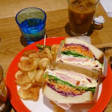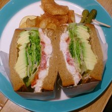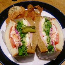 前から来たかったクラブハウスサンドのお店✨ボリュームたっぷりでパンがデニッシュ食パンみたいで美味しかった 写真は旦那さんが食べたローストビーフ&マッシュポテトのサンド