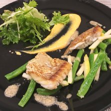 青海苔の茶碗蒸し、タピオカとカニ、生麩、柚子を添えて。