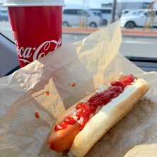 コストコわーい♥️ ほわほわホットドッグ🌭 ケチャップいっぱーい🍅 コーラうま!!