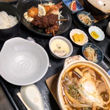 晩御飯 味噌煮込みうどん かき揚げ入り 週末は 49日までは 母の 供養で お寺と 自宅で おっさまが お経を してくれます 昨日から泊まり 今日も あれこれしてきました。 夜は 兄家族と 私とチビで お母さんも好きだった 山水で 夕飯~🍴 お母さんも 同席していたかな⁉️(笑) 兄は 父が毎回頼んでいた 味噌カツ‼️ 久しぶりに 見て懐かしくなりました。 味噌煮込みうどんは やっぱり山水が一番好き❤️