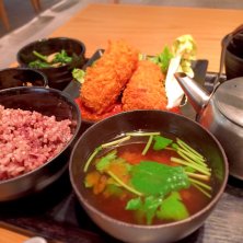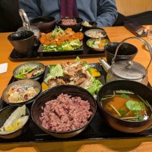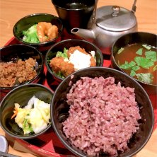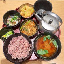 2月23日のお昼ご飯はグランフロントの地下で小鉢色々の定食です メインは豚肉の金山寺味噌漬け お肉柔らかくて美味しい! 夫のメインはチキンカツおろしのせ 女子が好きそうな雑穀米、ヘルシーでちょこちょこ食べられる定食だからか店内は女子でいっぱいでした