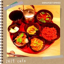 健康診断でもらったランチ券でおばんざいセット♡ こういう何種類もおかずあるの好き😊❤️ おかずは舞茸の天ぷら、鰆の湯葉揚げ、野菜たっぷりチャプチェ選んだ! at 24/7 café apartment 梅田