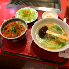 ランチは 焼肉屋で✨ ❇トマトサラダ ❇お子さまラーメン ❇タン ❇カルビ ❇テグタンクッパ(私) ❇桜ユッケビビンバ(友達) 食べ過ぎた~…(´д`|||)