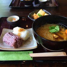 法隆寺近くのお店でランチ。おしゃれなこだわりのお店。鶏の竜田揚げランチが有名。ふっくらとボリュームもたっぷり。三輪そうめんをフランス版にアレンジした全粒粉入りのベルブラン?、爽やかなおつゆ、雑穀米もとても美味しかった。ご馳走様でした。