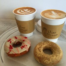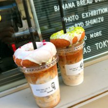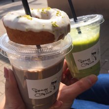 ✳︎アサイーバナナスムージー ✳︎ケールバナナスムージー ✳︎ホワイトピスタチオドーナツ 昨日のランチ。 イートインは並んでたので、テイクアウトして公園で食べました^^ いいお天気でよかった! ドーナツのせて写真。流行りにのりました。笑