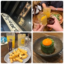 今日は名古屋に転勤する後輩のサシ飲み送別会〜! (´・ω)ノ[|_| |_|]ヽ(ω・`)カンパーイ ついでに塚田農場の課長に昇進したど〜♪(≧∇≦) 左下の写真は似顔絵やねんて!(ノ∀\*)キャ