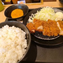 朝得チキンカツ定食🍚大盛り おかわりしたら、ゲロ吐きそうになりました😭お腹いっぱいすぎる。