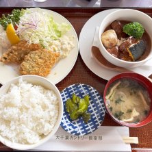牛ホホ煮込みと広島産カキフライの和洋ランチ