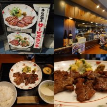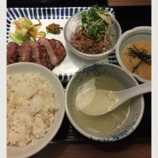 薄く切られた"牛たんスライス"と 厚めにカットされた"上たん焼き"が 同時に頂ける"サービス牛たん定食" "麦飯"に"テールスープ"は標準装備 "とろろ"付きでも1250円と リーズナブルでお得感あり "牛たん"は"おみ漬け"と "南蛮みそ漬け"と一緒に頂いたら最高